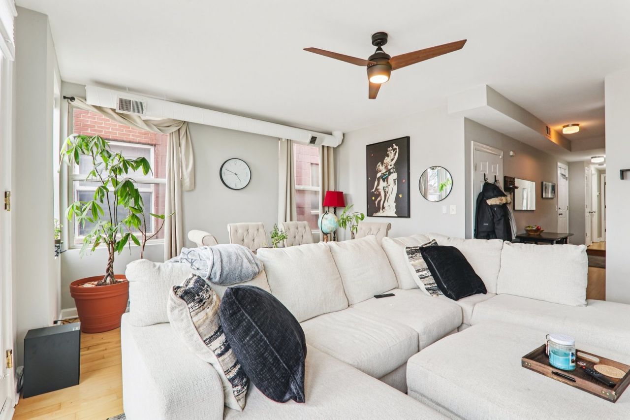 Beautifully updated 2-bedroom, 2-bath condo offering approximately 1,050 sq ft of modern living space in a prime Chicago location. This open-concept home features gleaming hardwood floors throughout, a spacious and functional layout, and abundant natural light. The contemporary kitchen is equipped with stainless steel appliances and flows seamlessly into the living and dining areas-perfect for entertaining. Both bedrooms are generously sized, with ample closet space, and the unit includes two full, updated bathrooms. Enjoy outdoor living on your private balcony, ideal for relaxing or morning coffee. Additional highlights include a brand new washer and dryer, new ceiling fans in all rooms, and modern finishes throughout. One exterior parking space is included for added convenience. Move-in ready and thoughtfully updated-this is city living at its best!