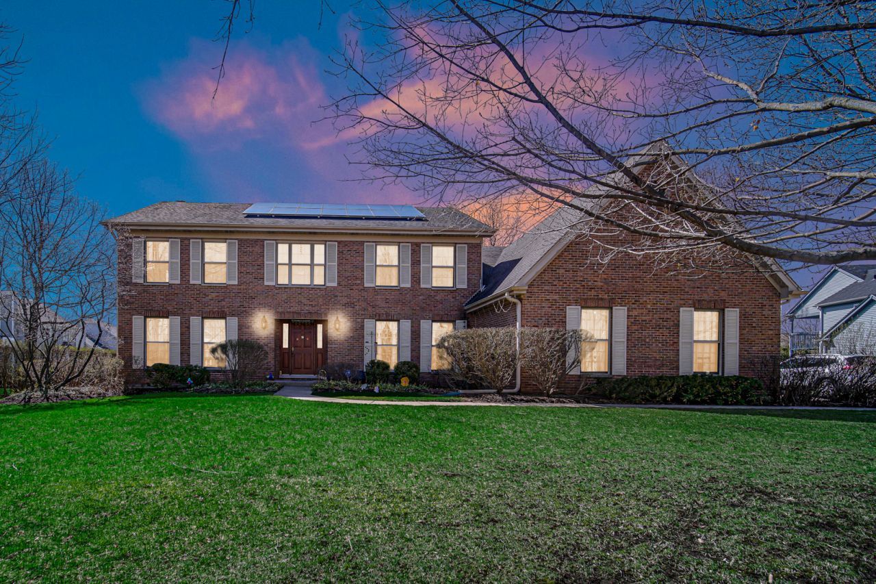 RELOCATING sellers hate to put this home up for rent! This executive rental, a custom-built residence by Raintree Homes, is perfectly situated in a quiet cul-de-sac within the award-winning Stevenson High School District. The grand two-story foyer leads to a freshly painted interior featuring refinished hardwood floors, modern chandeliers, and elegant designer wall paneling. The gourmet kitchen-a chef's dream with granite countertops and a walk-in pantry-now flows seamlessly into the family room in an open-concept layout, complemented by a secondary frying kitchen and brand-new gas and induction stove options. Modern upgrades abound, including a money-saving solar panel system, recessed LED lighting and ceiling fans throughout, and a 2nd-floor laundry room with a new washer and dryer. The primary suite offers a luxurious retreat with a whirlpool tub and additional flex space, while the family room impresses with a floor-to-ceiling brick fireplace and custom oak shelving with accent lighting. Complete with a 3-car garage, a scenic brick paver patio, and easy access to the train and shopping, this high-end home offers unparalleled comfort and efficiency.