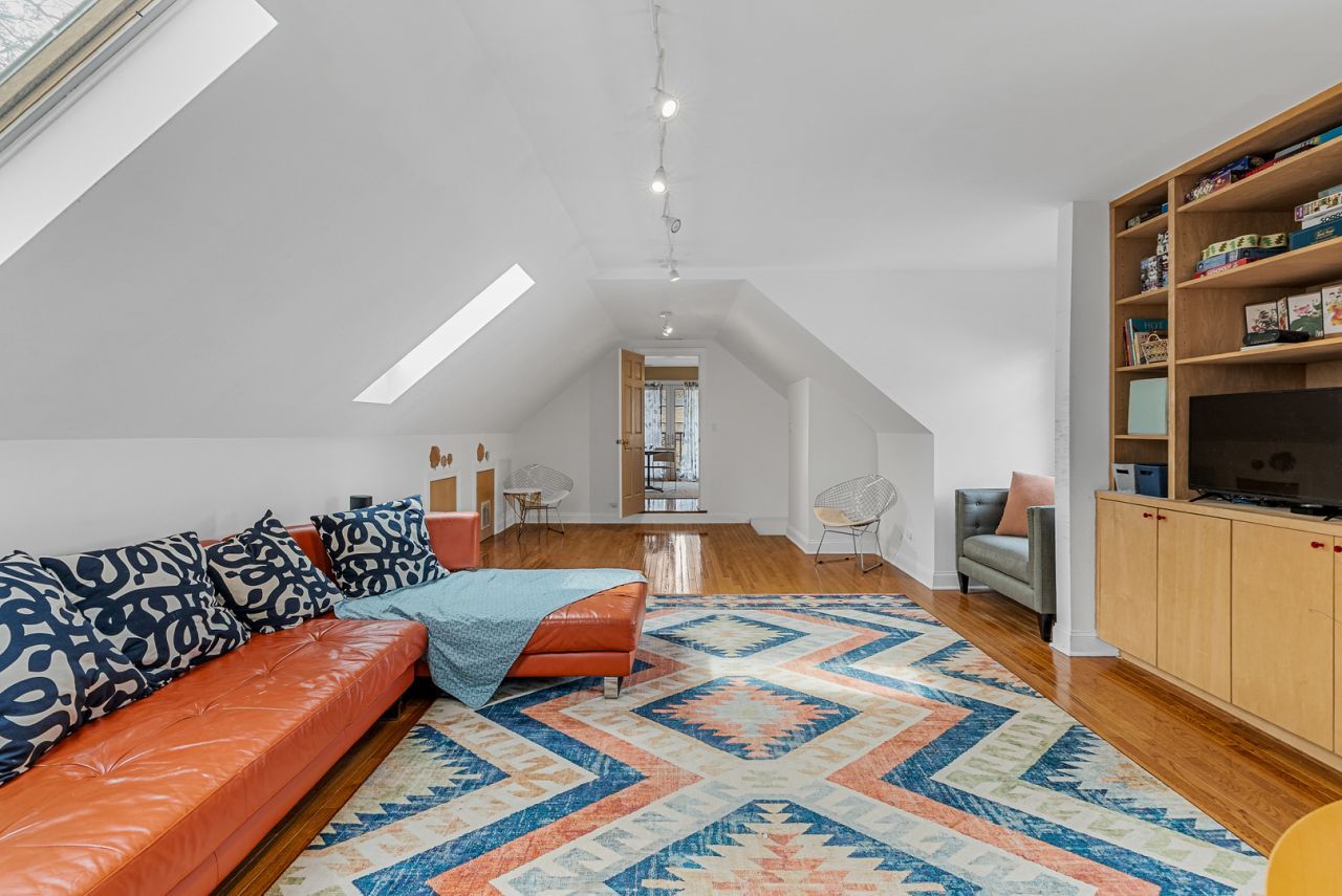 Luxury living in Chicago's sought-after Edgebrook neighborhood, filled with abundant natural light. This classic brick English Tudor beautifully blends timeless charm with modern updates, featuring hardwood floors throughout the first and second levels and a thoughtfully designed layout for today's lifestyle. Step through the foyer into the inviting living room and formal dining room, then continue past two spacious first-floor bedrooms, custom built-ins for coats and shoes, and a private office with French doors into the stunning kitchen. This light-filled, open-concept space showcases a modern kitchen with stainless steel appliances, an abundance of cabinetry, a large island, and an eat-in area-perfect for everyday living and effortless entertaining. It also opens to a family room area that can fit a sectional couch. Step through the backdoor to lead to a nicely sized backyard, ideal for gatherings or quiet outdoor enjoyment. Upstairs, retreat to the serene primary suite featuring a full bath, walk-in closet, and charming Charleston-style balcony. A large great room upstairs provides a flexible living space and separates the primary suite from the spacious fourth bedroom, offering both privacy and versatility. The finished basement adds even more functionality with a rec room, laundry room, work room, and generous storage space. Nearly 4,000 square feet of finished living space! All of this is ideally located within walking distance to neighborhood shops and restaurants, the Metra, and Choo-Choo Park-offering the perfect blend of comfort, style, and convenience.