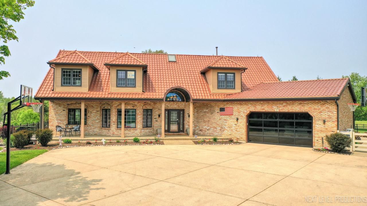 Outdoor & entertainment enthusiast? Dream of endless possibilities for outdoor fun & relaxation? Well this is IT! This one-of-a-kind home boasts a whopping 20 acres of land, providing ample space for horse lovers and gardening enthusiasts. Enjoy watching deer, camping, picnicking, and even zip lining. Outdoor fun opportunities are truly endless. Step inside & you'll discover three levels of interior living that feature resort-style living. The main level boasts a B-I-G rear covered deck that's perfect for entertaining day or night. During pesky insect season you're golden thanks to the nearly invisible retractable screens that surround the ENTIRE sprawling deck area. Be the ultimate host with a HUGE outdoor granite bar that seats a minimum of NINE people, complete with multiple grills, sinks, an ice maker, liquor tap, refrigerator and of course the very large flat panel TV. When it's time to cool off, you can take a dip in the stunning in-ground pool complete with water slide and diving board, or take in some sun around the pool on the expansive stamped concrete patio. The white cabinet kitchen is a gourmet chef's dream. Encompassing the 6-seat granite island is every high-end Viking appliance & cabinet feature you can imagine including a warming drawer, espresso machine, pull-out shelves, secret glide-up cabinet panels (to hide messes quickly!), MANY drawer organizer boxes, a full-sized red/white zoned Sub-Zero wine fridge AND a full-sized Sub-Zero beverage fridge. Have the big game on the Kitchen's generously sized flat panel TV for guests to view from every angle. Yes, there's also a flat panel TV on the floor-to-ceiling stone trimmed fireplace in the open concept Living Room. Between the Kitchen, outdoor bar and grill, pool and (did I mention?) stone patio with a stack wood burning fireplace all just steps away from each other makes it easy to cook up a feast and please every type of guest you could invite under the planet. After a day full of outdoor fun & entertaining, you can retire to the main level master suite, complete with a recently updated luxury bath that includes a steam shower, private commode room, dual sink granite vanity & walk-in closet. Retreat to the private access deck to soak in majestic views. The second level offers three additional bedrooms each graced with a dormer window, sitting area and private vanity sink, plus a sizable loft brightly lit by the 2 skylights above with stunning outdoor views from the 2nd level Living Room windows. Need MORE living space? Don't miss the ground level walk-out Basement that leads to a covered patio and pool. Invite the In-Laws to take over the Basement's 2 rec rooms, 5th Bedroom and full bath. Are you a pack rat? You're in luck! 2 immensely sized storage rooms provide more than enough space to hold all your prized possessions. But that's not all - this property also features a detached high garage with an attached glorified heated Man Cave (workshop) with a 1/2 bath. Perfect fo